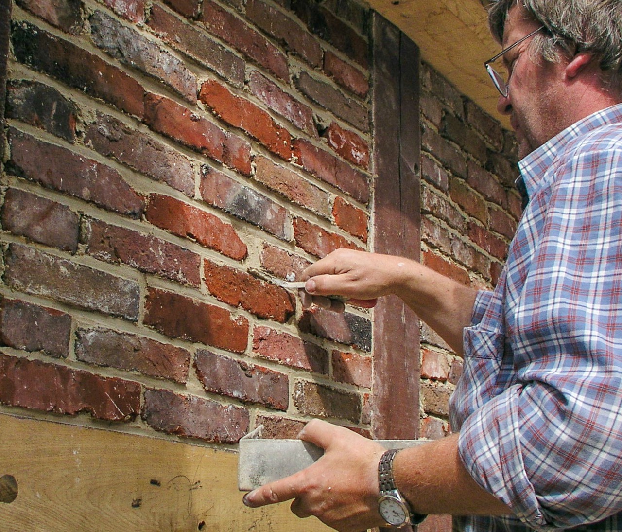 Maurer, die vor 30 oder 40 Jahren noch das Einsumpfen von Kalk gelernt haben, stehen bei uns heute wieder hoch im Kurs. Es hat sich herausgestellt, dass zementhaltige Mörtel bei der Ausfachung von Fachwerk zu einer großen Belastung des Holzes führen und den witterungsbedingten Verfallsprozess stark beschleunigt. Deswegen setzen wir nur noch herkömmlichen Kalkmörtel ein. Auch bei allen anderen Mauerarbeiten neigen wir eher dazu, die Arbeiten in bewährtet Art und Weise auszuführen.